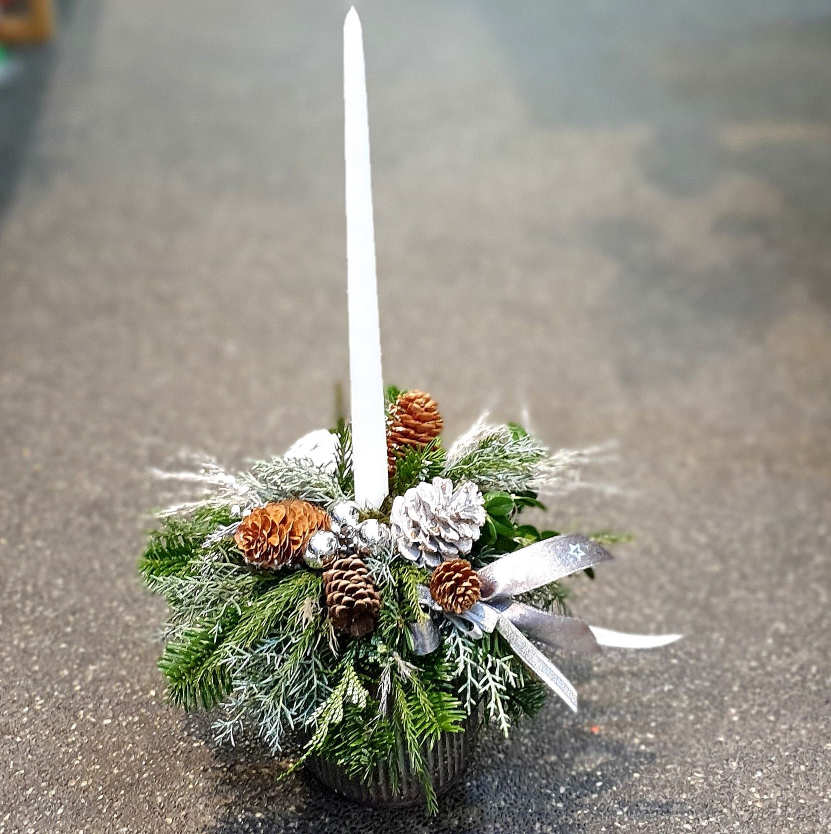This stunning Christmas table arrangement is the perfect gift for your loved one. Arrangement is 55cm tall.