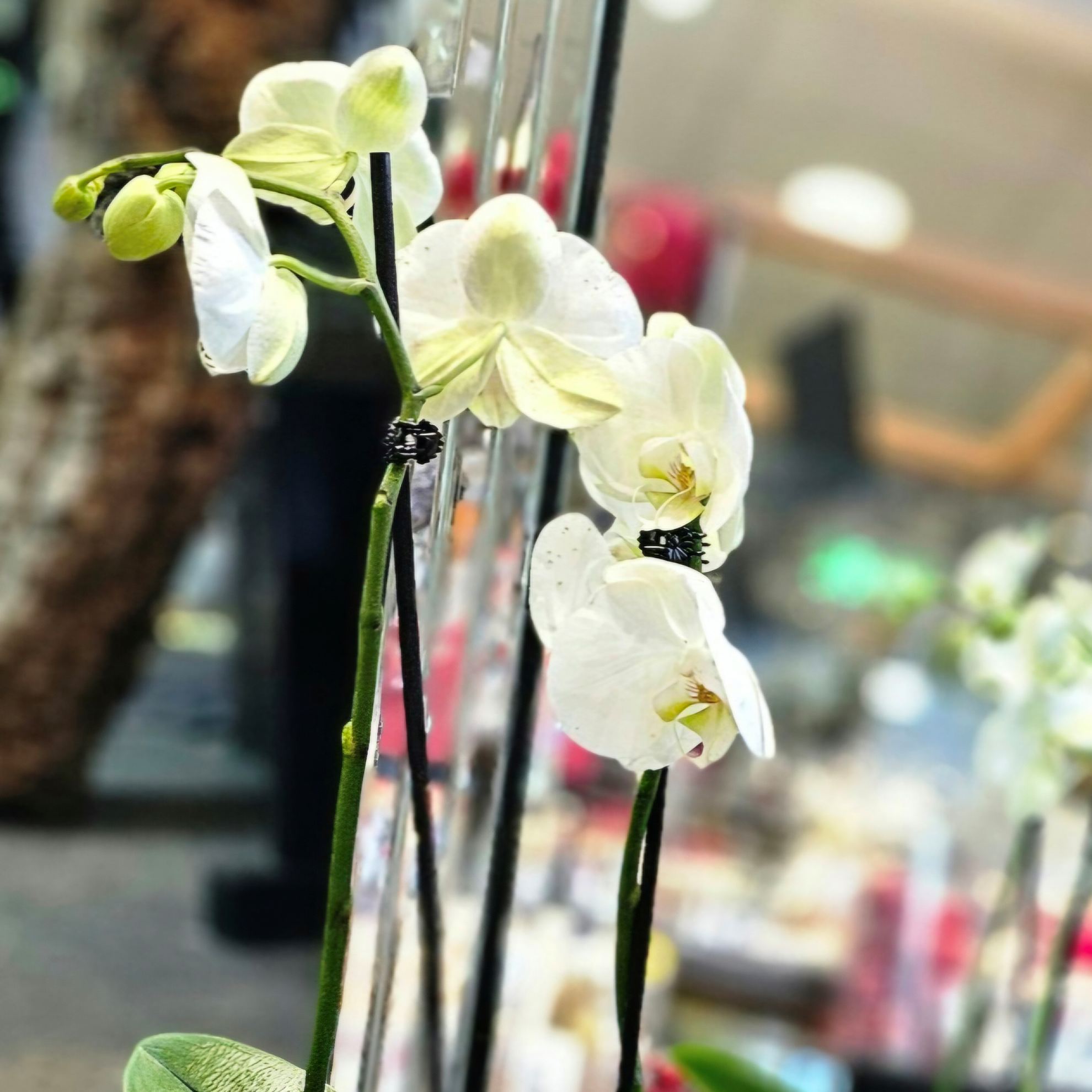 Orchídeu skreyting með fallegum stórum blómum sem mun gleðja alla yfir jólahátíðina. Æðisleg skreyting sem endist.