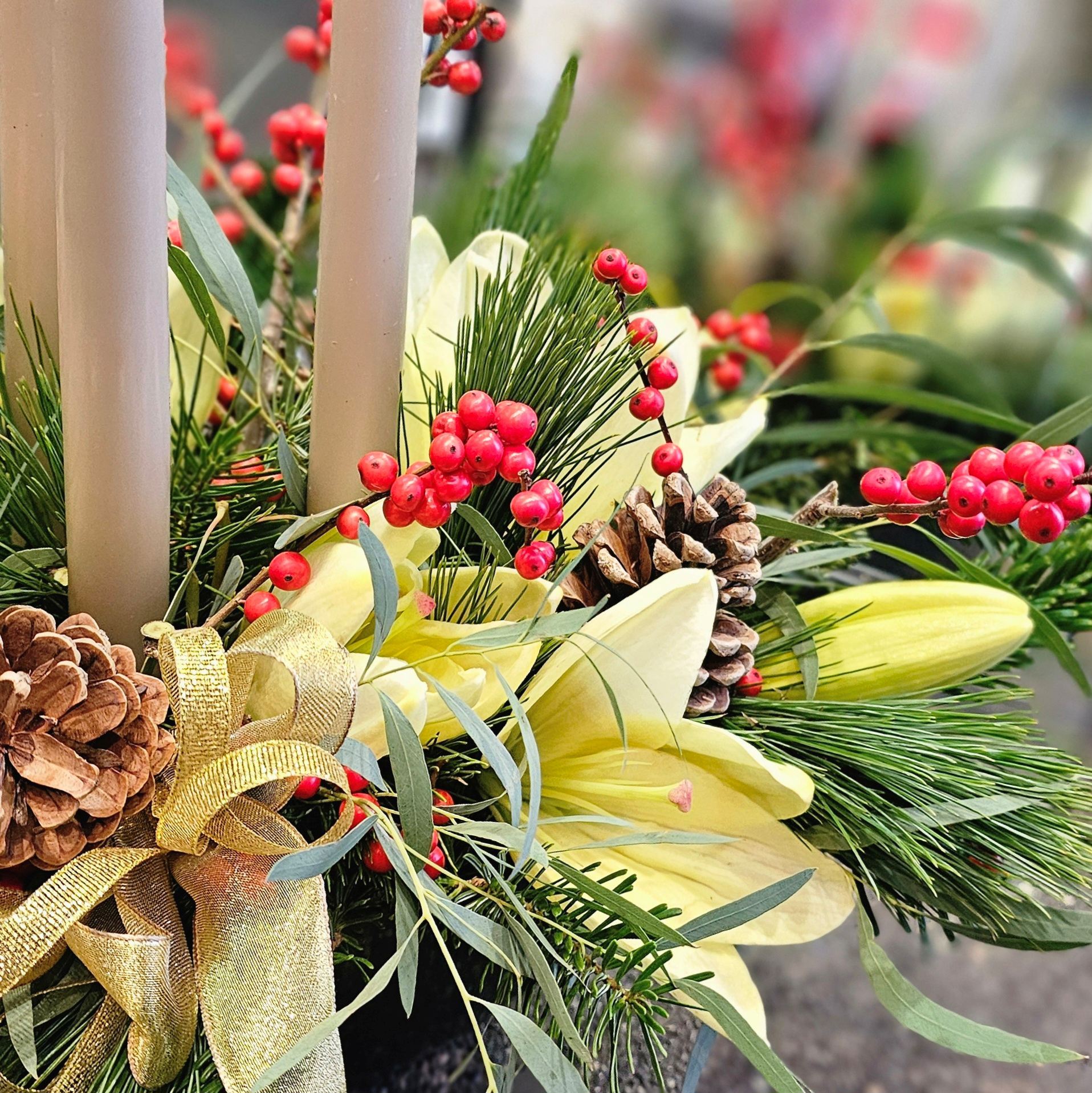 Sentu þessa fallegu jólaskreytingu til einhvers sem þér þykir vænt um þessi jól. Hæðin á kertinu eru 50 cm.