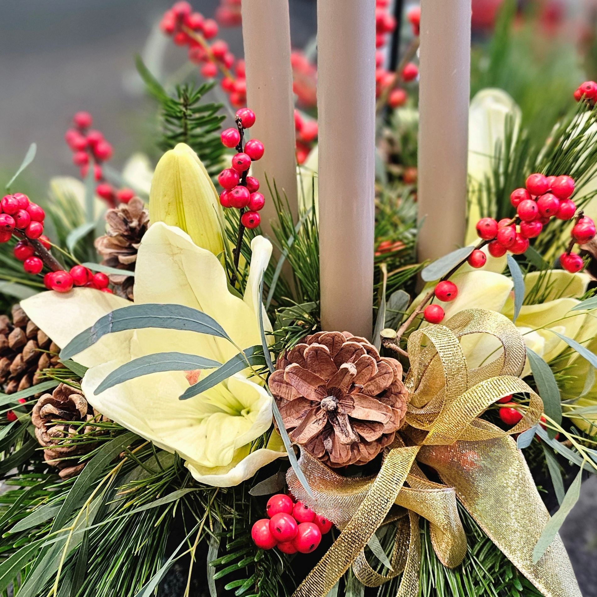 LÚXUS Festive Christmas blómaskreyting meď 3 kertum